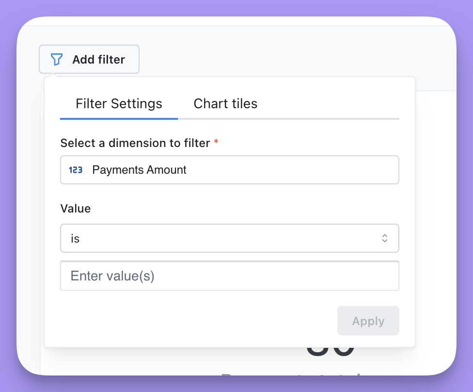 To learn more about adding filters to your dashboards, check out our guide on using filters.