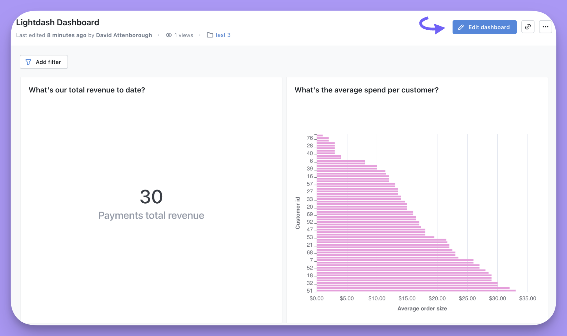Now let’s add some filters to your dashboard. First, start by editing your dashboard by clicking on the Edit dashboard button.