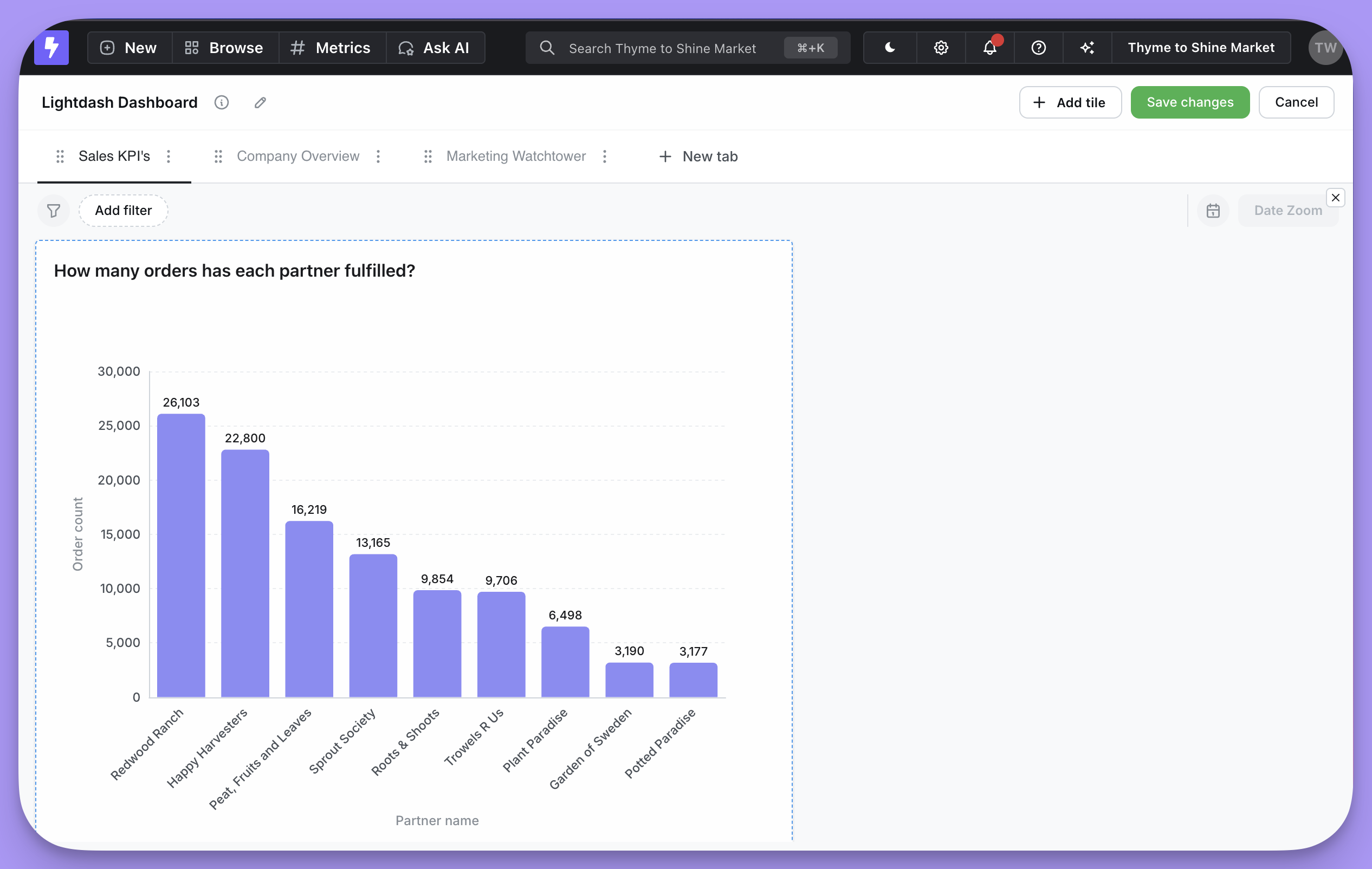 In addition to charts, you can also add markdown tiles or embedded Loom videos to explain the dashboard to people who will be using it.